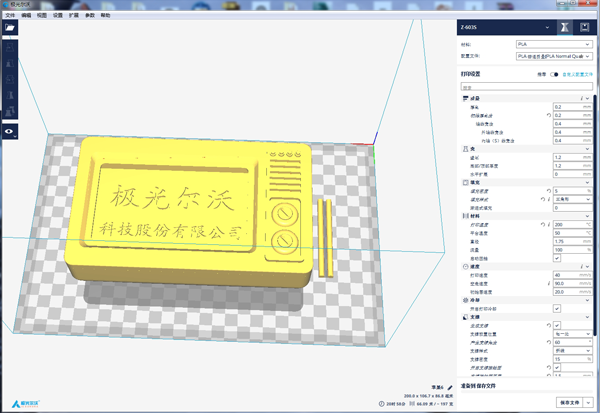 2、切片:在打印前,將電視機(jī)模型的主機(jī)與天線單獨(dú)保存成stl文件; 然后將stl文件導(dǎo)入切片軟件,設(shè)置層高、厚度、填充密度、打印速度、支撐等打印參數(shù)并保存成GCode文件,而后導(dǎo)入3D打印機(jī)即可開始打印。(切片軟件推薦:Cura /JGcreat)